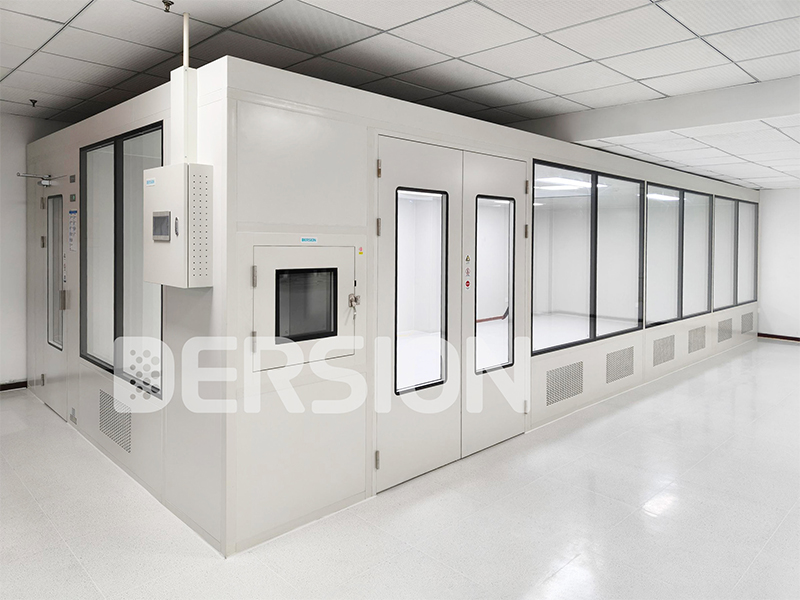 本潔凈室項目以模塊化設(shè)計為核心,嚴(yán)格遵循萬級潔凈標(biāo)準(zhǔn)匠心打造。模塊化潔凈室主體結(jié)構(gòu)采用手工巖棉板與雙層中空玻璃組合,既保障了結(jié)構(gòu)的穩(wěn)固性與密閉性,又通過通透質(zhì)感與簡潔線條呈現(xiàn)高顏值外觀;內(nèi)部吊頂采用絲桿吊結(jié)構(gòu),安裝高效且承重可靠,完美契合模塊化快速搭建與后期調(diào)整的需求。氣流組織采用頂送側(cè)回設(shè)計,搭配 FFU(風(fēng)機(jī)過濾單元)與高效過濾器的黃金組合,可快速過濾空氣中的微粒雜質(zhì),確保潔凈度持續(xù)達(dá)標(biāo)。控制系統(tǒng)配備7寸液晶觸摸屏,實現(xiàn)運行參數(shù)的實時監(jiān)控與便捷調(diào)節(jié);同時配套1臺風(fēng)淋室與1個普通傳遞窗,分別完成人員除塵與物料潔凈傳遞,全方位阻斷外界污染。